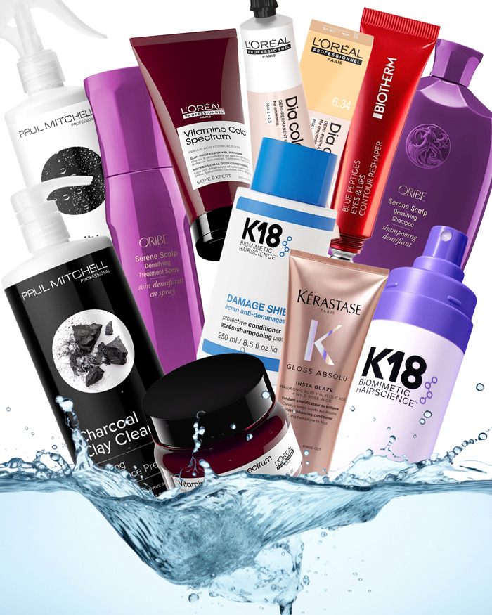 Bewegte Darstellung neuer Haarpflegeprodukte für Frühling 2025, die nacheinander eingeblendet werden