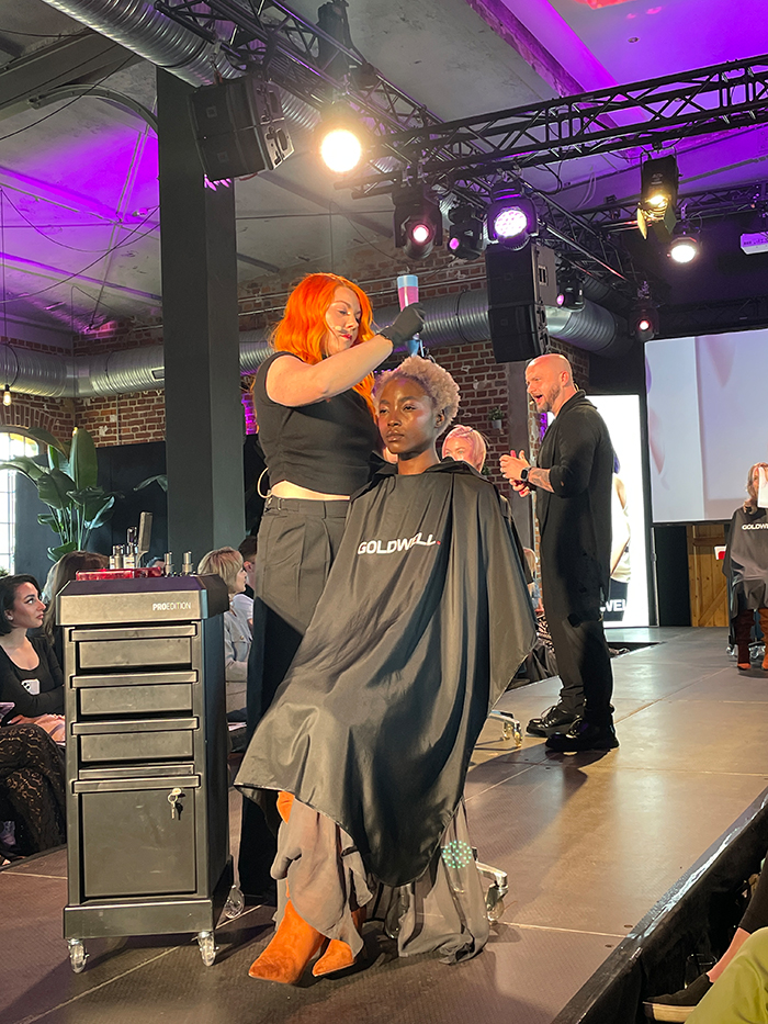 Live Haarschnitt auf einer Bühne beim AUTHENTIC BEAUTY CONCEPT Event Schweiz