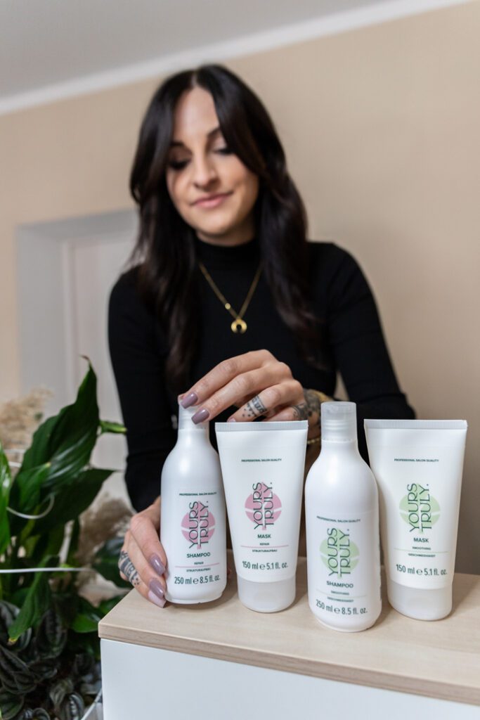 „Yours Truly passt perfekt in mein Konzept. Durch die klare Vier-Schritte-Routine ist die Produktberatung für meine Kundinnen leicht verständlich und nachvollziehbar“, erklärt Rebecca. Neben Yours Truly arbeitet sie auch mit Paul Mitchell. „In meinem Salonnamen ist sogar der Name meines Hundes integriert – das zeigt, wie wichtig mir Tierwohl ist. Ich finde es großartig, dass Paul Mitchell sich schon immer aktiv dafür einsetzt“, sagt Rebecca.