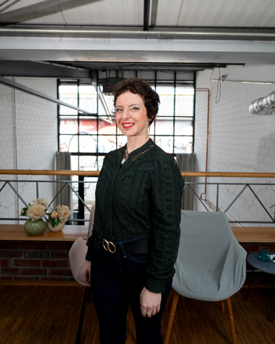 Portrait von Friseurin Rebecca Elyamany und Ihrem Hund für Ihr One-Chair-Salon Konzept RESOEL