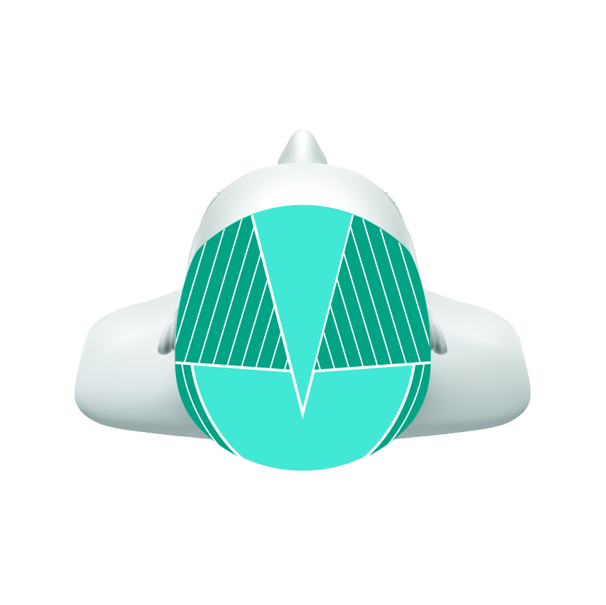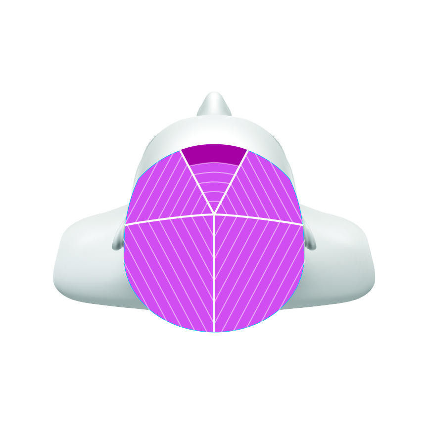 Step 1: Am Oberkopf drei dreieckige Sektionen im vorderen Bereich und drei im hinteren Bereich abteilen.