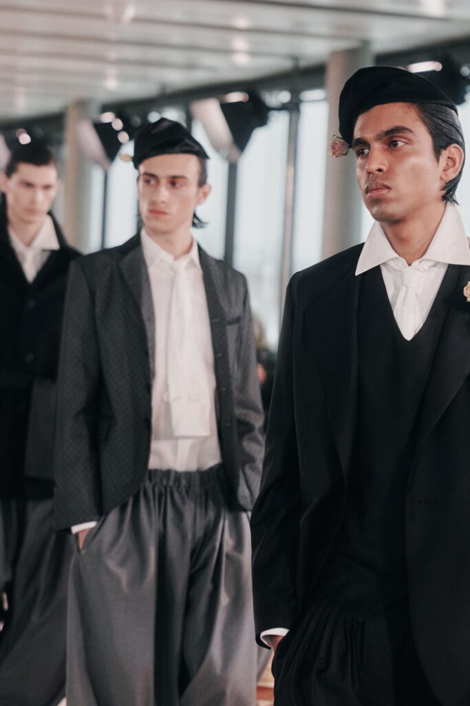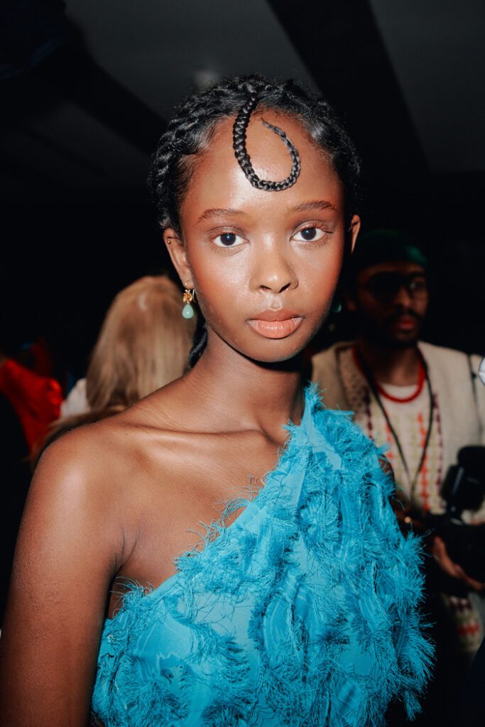 Großer Publikumsmagnet war die Show des aus Nigeria stammenden Labels Orange Culture, das seine neueste Kollektion “In the Shadow“ präsentierte. Designer Adebayo Oke-Lawal ließ sich von den stillen Kämpfen inspirieren, die viele Menschen mit sich tragen – besonders in Gemeinschaften in denen psychische Gesundheit noch stark stigmatisiert ist.